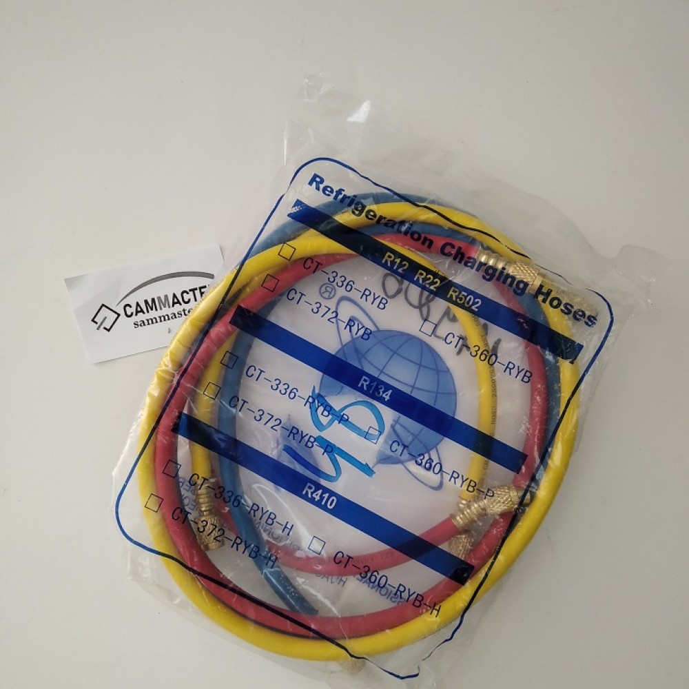 Шланг заправочный 120см 1/4 500-2500 Psi 3шт из высокопрочной резины для манометрических коллекторов и автоматических станций. Предназначен для работы с различными хладагентами. В составе каждого шланга присутствует депрессор, что обеспечивает простое подключение к холодильной системе.